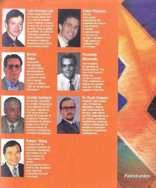 Consultor de Administração e Marketing, Master Coach e Palestrante Internacional desde 1996, com destaque nas áreas de Motivação, Vendas, Atendimento, Liderança e Gestão da Excelência em Serviços com Foco no Cliente!
